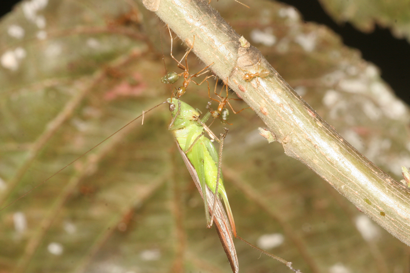 日本のケアリ類なども、アブラムシを保護するために土の壁を作りますが、ツムギアリは、紡いだ葉の中で保護をしていたのです。