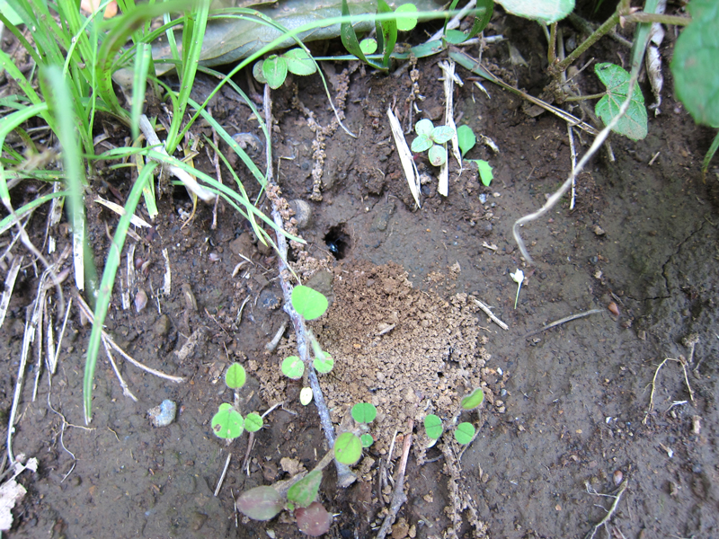 右の写真が女王が掘った巣穴で、中には女王が見えていますね。