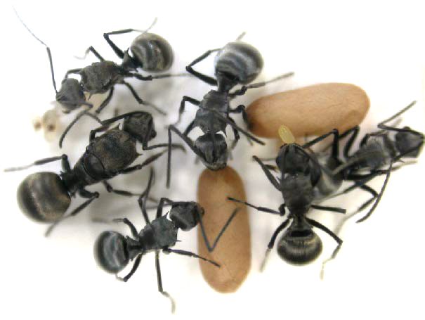 このように乗っ取った巣の中で、トゲアリはどんどん産卵をして、幼虫はクロオオアリが育てます。