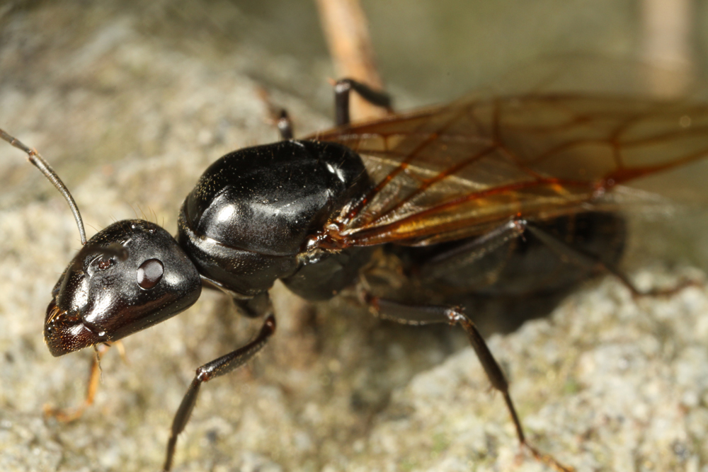 しばらく山を歩き続けていると、結婚飛行を行いそうなクロオアリを発見しました。