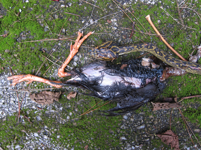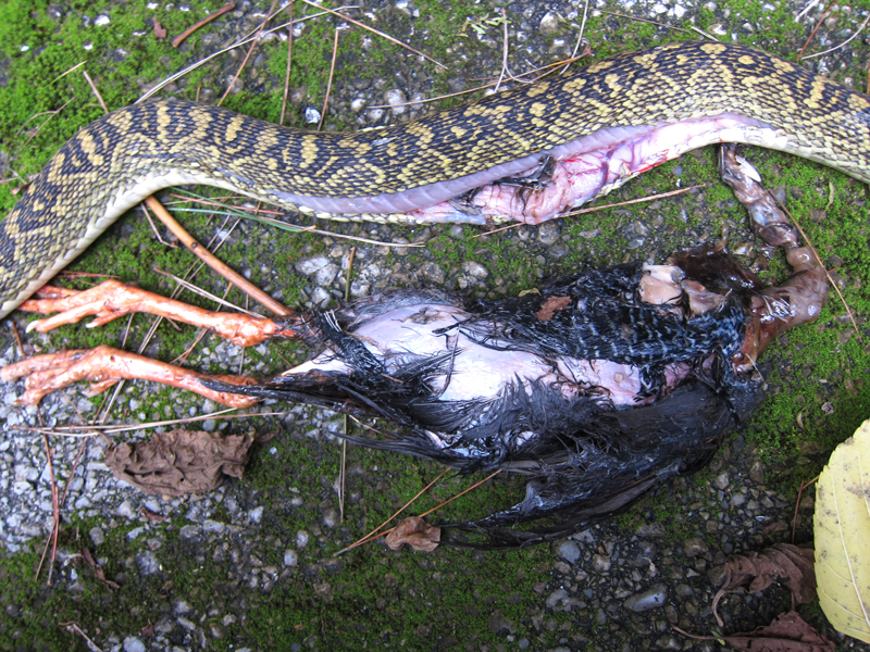 ハブの頭とヤンバルクイナの大きさを比べてみても、よくこんなに大きな獲物を呑み込んだものです。