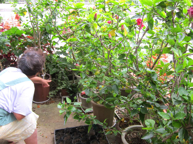 アリを探すためにしゃがむときは、まずはハブがいないかよく見ることが必要です。