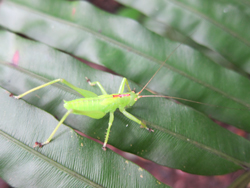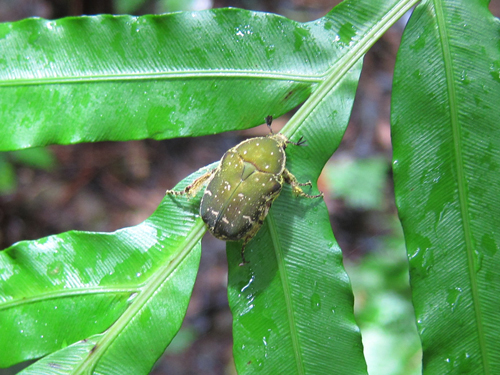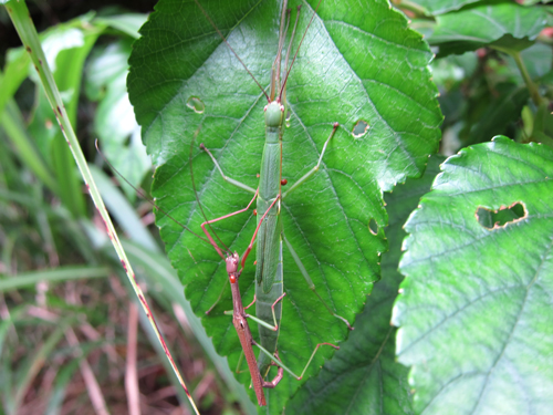 葉っぱの上にもハナムグリ、バッタ、ナナフシなどがいます。