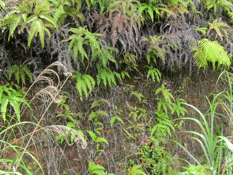 林道沿いの斜面を見ていると、赤くて小さな植物が目立ちます。