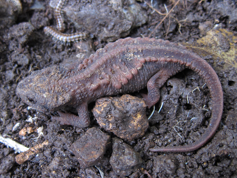 肋骨が横に広がっている変わったイモリで、産卵は水辺で行いますが、それ以外の時期は陸上で暮らすイモリです。