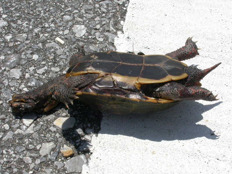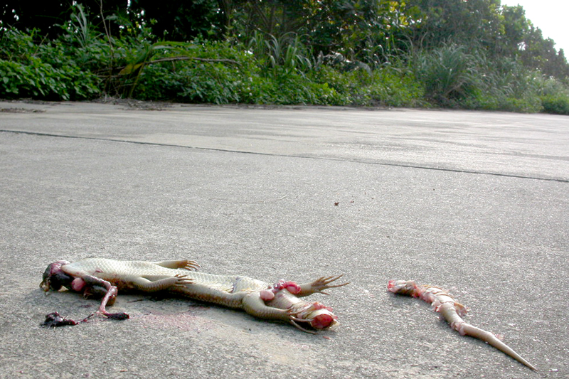 これだけ多くの生き物が暮らすヤンバルですが、山の中にはいくつもの林道が作られていて、毎日多くの生き物たちが車に轢かれてしまうのです。
