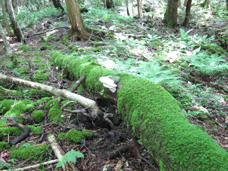 ムネアカオオアリは、このような倒木などが多くある森に生息しています。