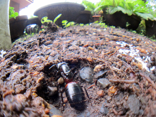 通常は朽木に巣をつくるムネアカオオアリですが、よい朽木がない場合は土に巣を作る場合もあるのです。
