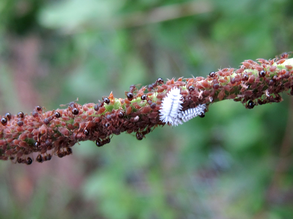 アミメアリが、アブラムシとカイガラムシから甘露をもらっていました。今回もとても楽しい採集となりました。