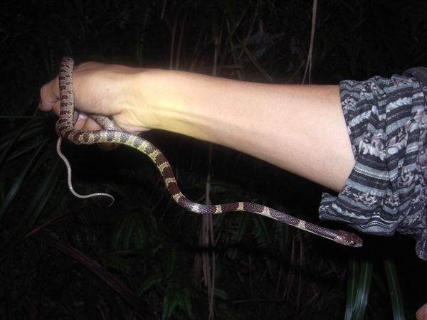 今までに見つけたヘビは、サキシママダラ、サキシマハブ、サキシマスジオ、サキシマアオヘビ、イワサキセダカヘビ、イワサキワモンベニヘビ、撮影はしませんでしたがブラーミニメクラヘビです。