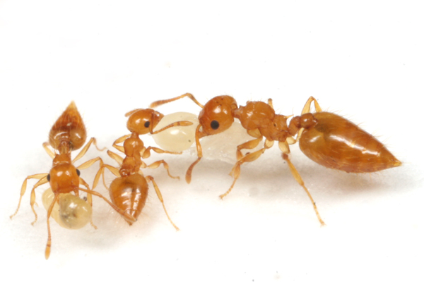 見た目はキイロシリアゲアリに似ていますが、女王がかなり小さい。