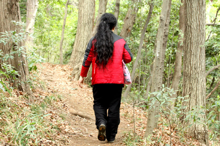 登山道を歩く坂本さん。