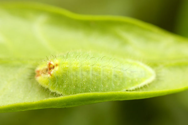 こちらはイボタノキを食べるウラゴマダラシジミで、おそらく3令幼虫とのことです。
