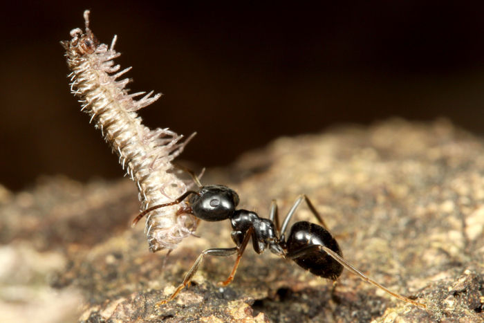 死んだヤスデを運んでいました。