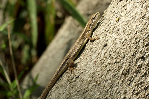 日光浴中のカナヘビ。