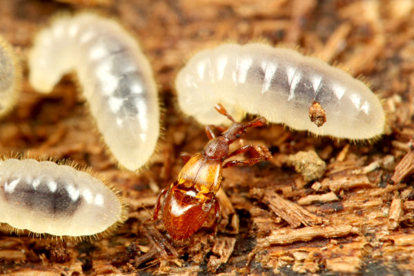 太い体型のヒラタアリヤドリHomoeusa prolongata。