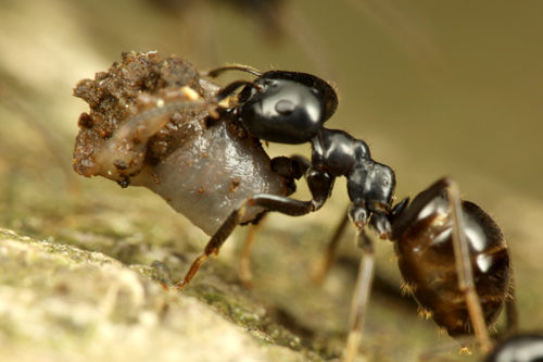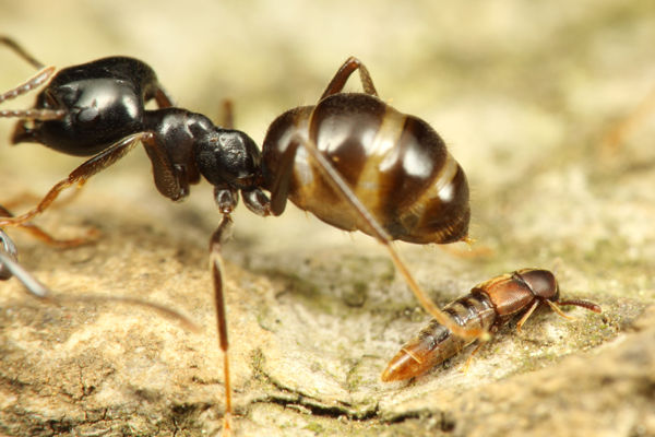 そして、もう一つ気が付いたことは、小型ハネカクシのアリヤドリが大量にいたということです。