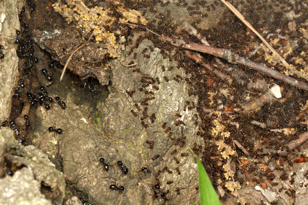 今年に入ってから数日置きに観察に来ていますが、こんなに働きアリが出歩いているのは今年初めて見ました。