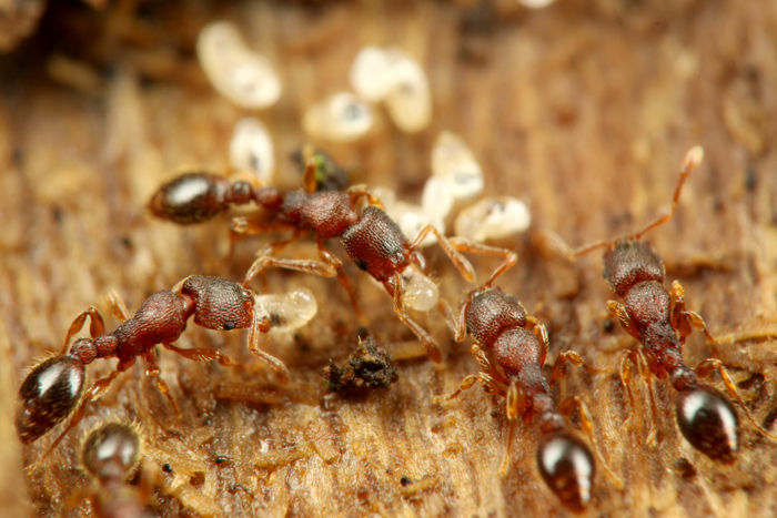 このコロニーは引越しをしていたようで、卵や幼虫を新居に運ぶ働きアリが多くいました。