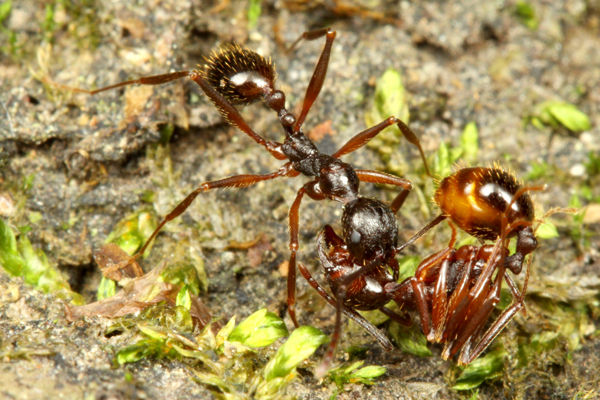 仲間を運ぶときの形は、ヤマアリ亜科は向かい合わせになりますが、フタフシアリ亜科は背負うような形になるなど、種類によって様々な方法があります。