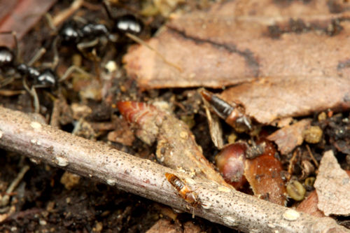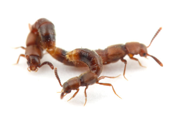 このハネカクシは、クサアリの巣の周りで暮らすハネカクシを専門に捕食するハネカクシです。