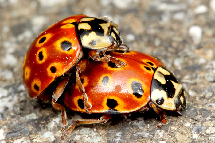 右:交尾中の美しいウンモンテントウ。