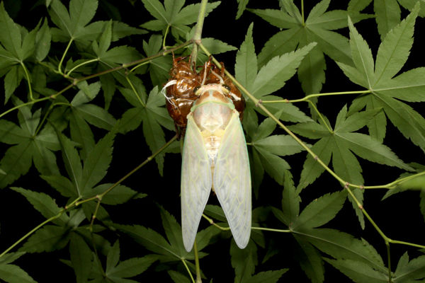 夏休みに近所の公園に、親と暗い時間に探しに行き、羽化途中の1匹を見つけることができたのです。