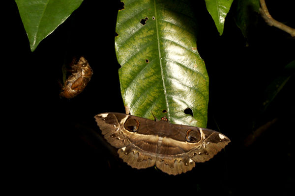 リュウキュウコノハズクを探すために、樹上にライトで照らしているとクマゼミがボトボト落ちてきました。