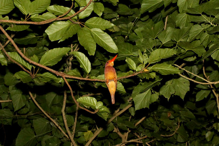 写真左:木の枝で眠っていたリュウキュウアカショウビン