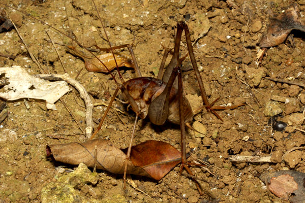 写真左:日本最大の巨大カマドウマ、オオハヤシウマです。