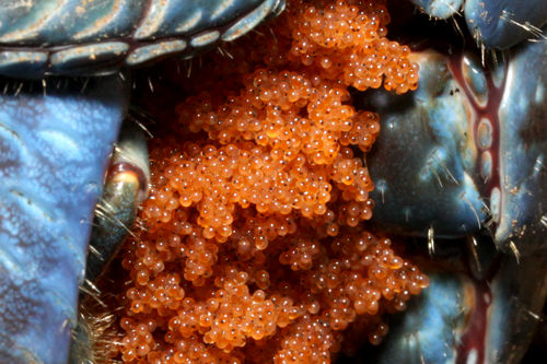 体の大きさが握りこぶしほどの小さな個体も、すでに性成熟はしているようで、たくさんの卵を抱えています。