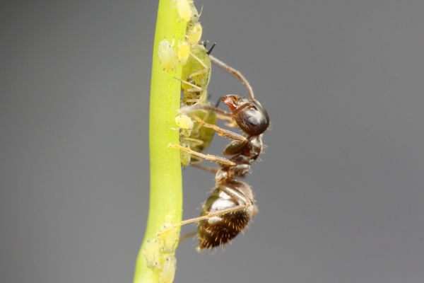 アブラムシから甘露をもらうトビイロケアリ。