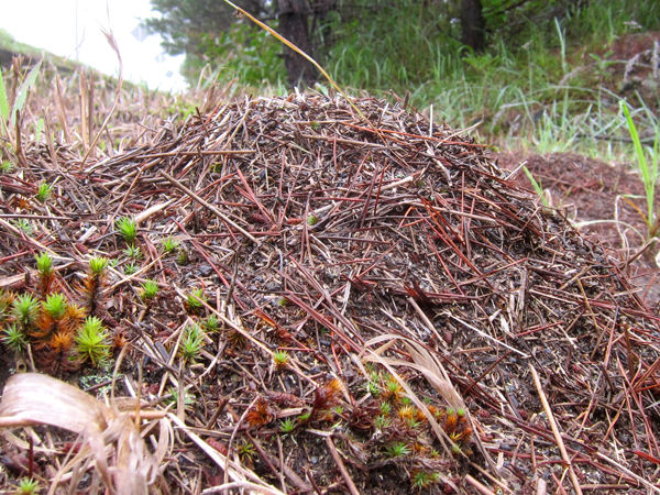 これはエゾアカヤマアリが作ったアリ塚です。