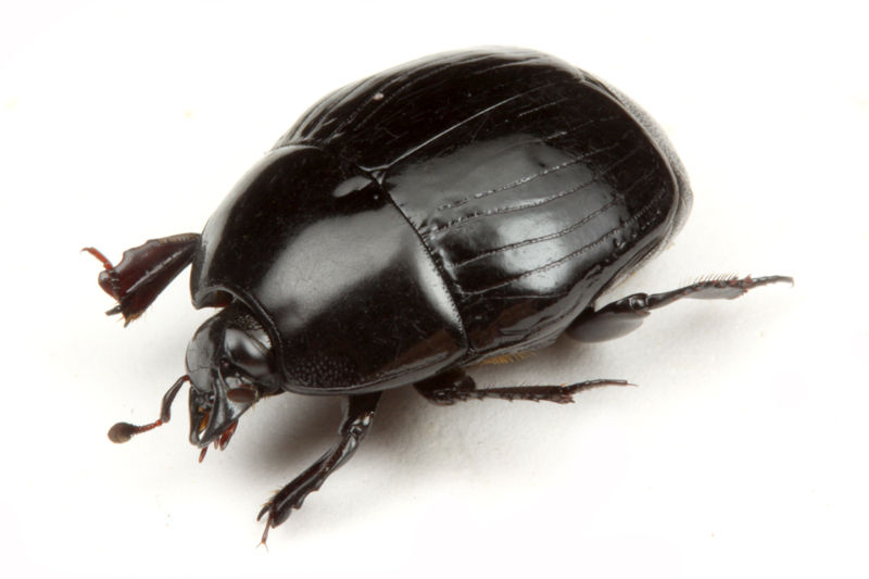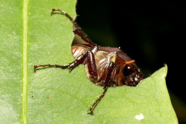 写真右:オオヒキガエルの死体に来ていた巨大なエンマムシ