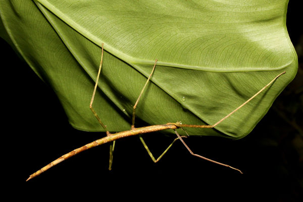 コブナナフシが、クワズイモの枯れた葉を食べています。