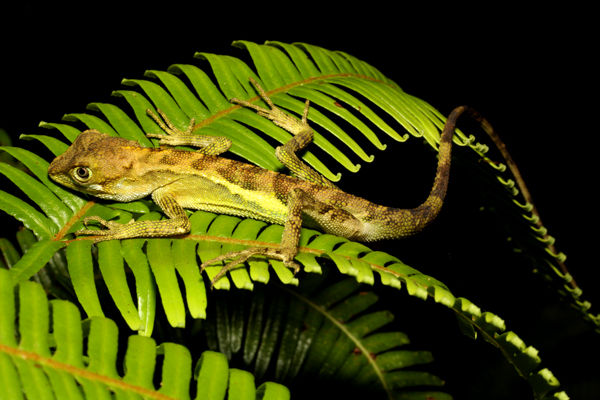 写真左:熟睡中のサキシマキノボリトカゲ