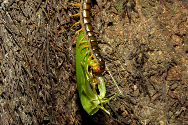 この日はバッタ、ゴキブリ、ナナフシ、ムカデなど多くの生物が活動していました。