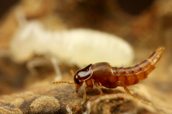 イエシロアリの巣からは、好白蟻性のハネカクシSinophilus yukoaeがたくさん見つかりました。