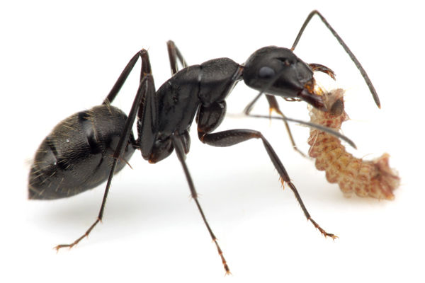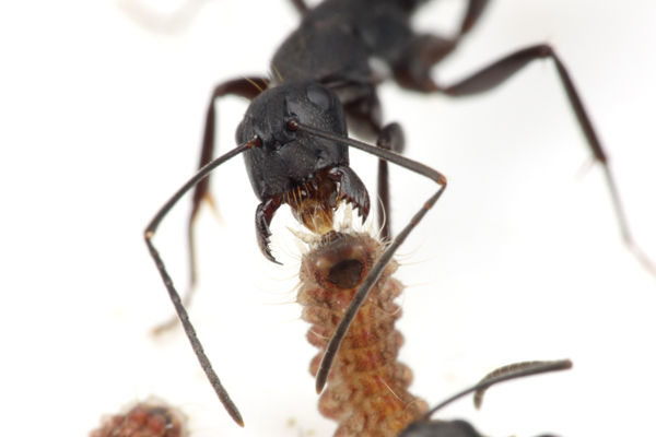 クロオオアリが近くに来ると、上半身を持ち上げて、空腹であることを伝えます。
