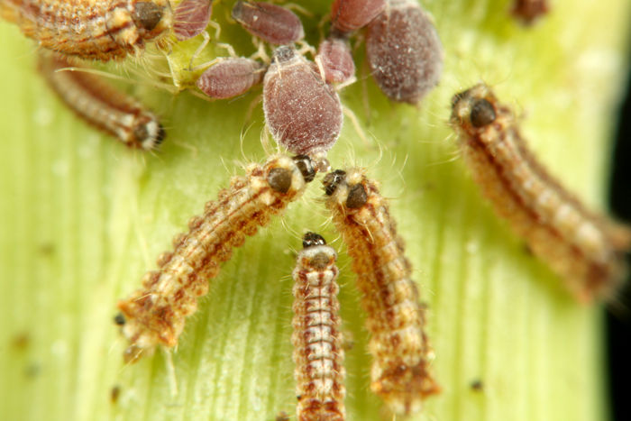 そしてクロシジミたちは、2令幼虫になるまでアブラムシの甘露を飲んで成長します。