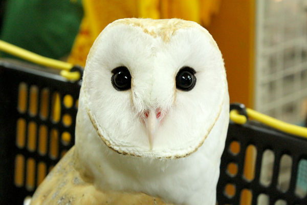 レジ前で、買い物カゴに入ったメンフクロウのピーちゃんを発見!