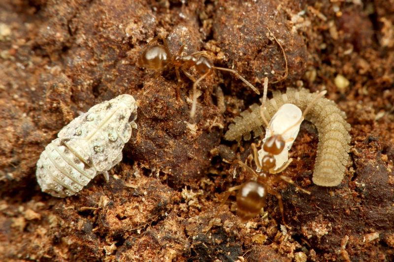 ウンカはアリの巣の中で、木の根の汁を吸って生活しています。