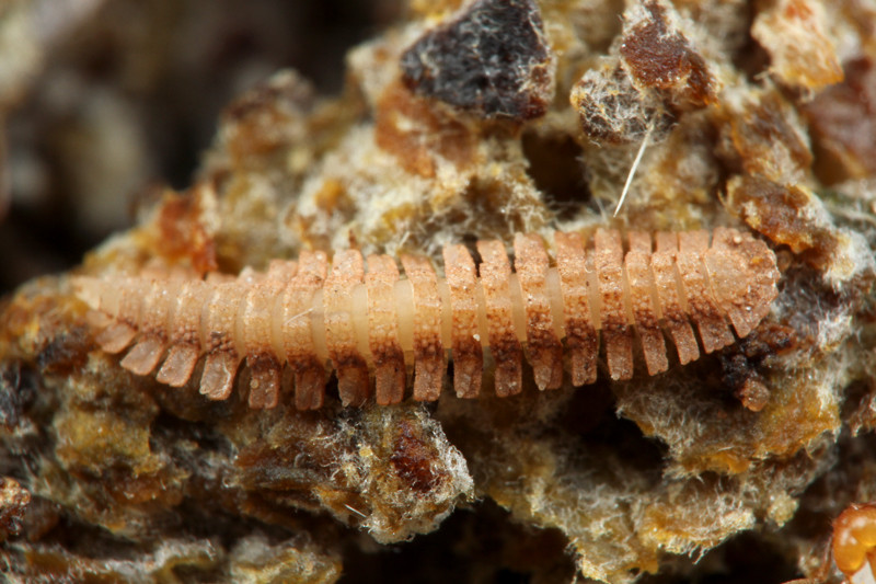 アリヅカムシの幼虫は、今までほとんど発見されていないようですが、この形の幼虫で間違いなさそうです。