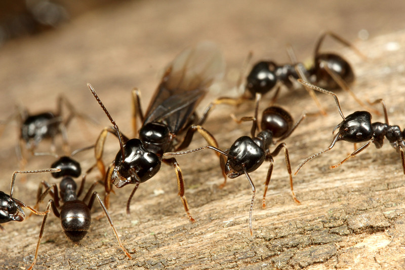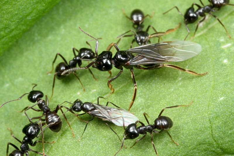 続いてクサアリの巣を見に行くと、たくさんの新女王とオスが巣の入り口から出ていました。