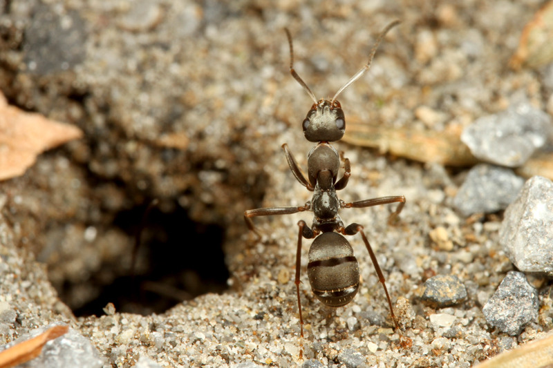 サムライアリの巣から出てきたクロヤマアリ。