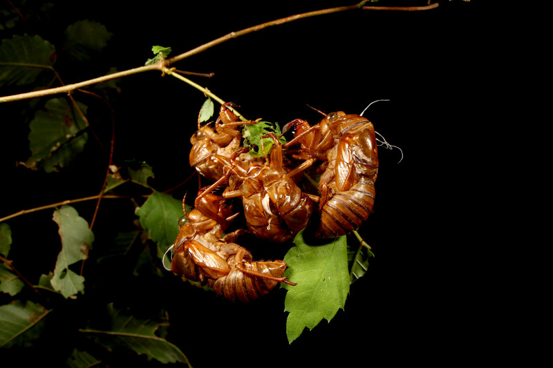 セミがどのように羽化場所を選ぶのかは分かりませんが、人気のある場所には多数の抜け殻があります。