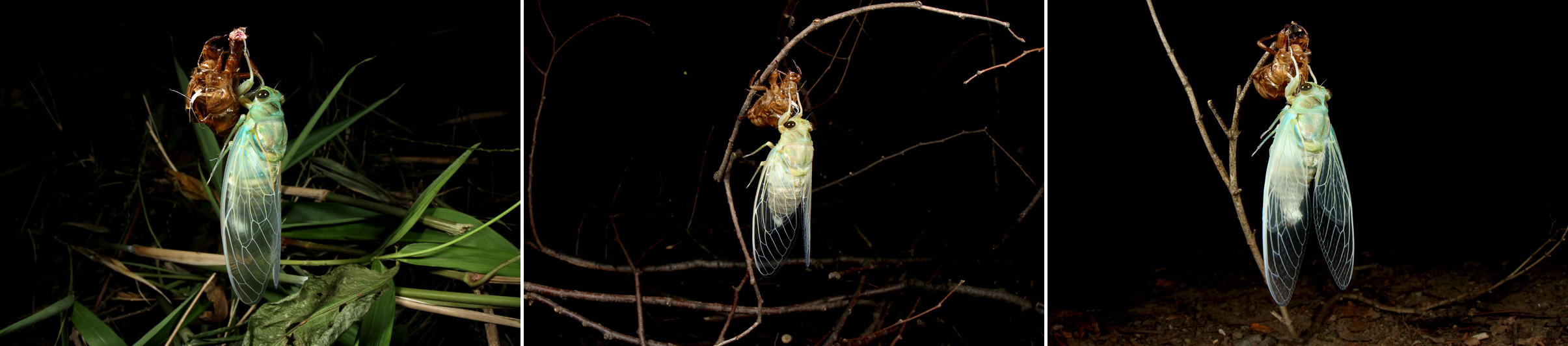 そして、羽化したばかりで白や緑に輝くセミたちが見つかりました。