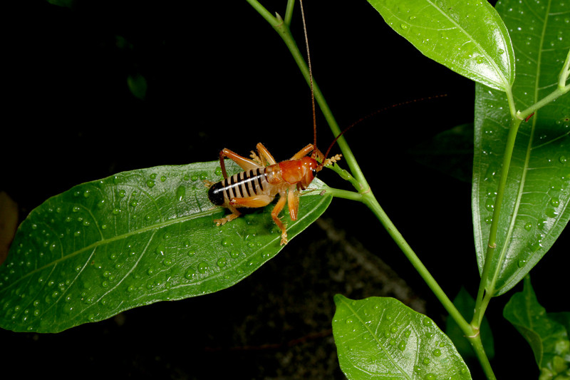 夜間、木の葉の上などを徘徊しているコバネコロギス。