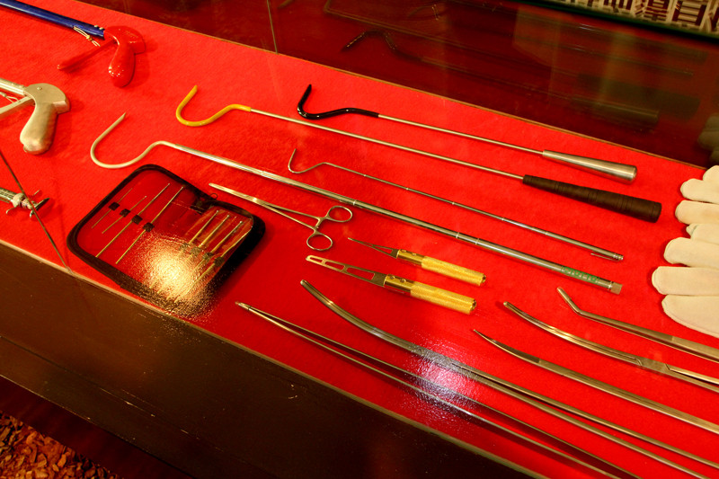 ヘビを扱う器具や血清の展示。