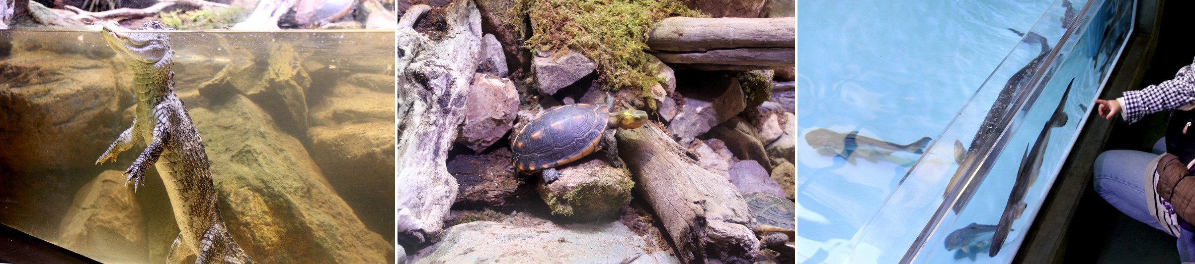 ゾウガメ、カメレオン、フクロウなど様々な動物が展示されていました。